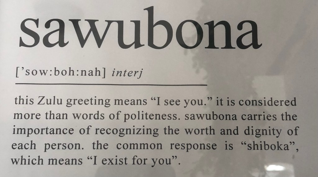 United States citizens who enter and exit our great nation on occasion will surely be surprised at how friendly and welcoming the immigration and customs and security officials are in other countries. I am yet to hear, anywhere in the world, the yelling at passengers at security and experience the brusqueness and suspicion that routinely meets travelers entering the USA. I’ve been reconditioned to expect friendly exchanges: the South African official welcoming me in Zulu and witnessing his delight at hearing my feeble attempts at a response in Zulu. Another immigration officer, a man of advanced age, stamping my passport to exit South Africa for Washington DC, expressed playfully to a roving colleague, again in Zulu, “why doesn’t the old man stay home” only to be taken aback with laughter when I thanked him using a most respectful Zulu title reserved for older men than I am!