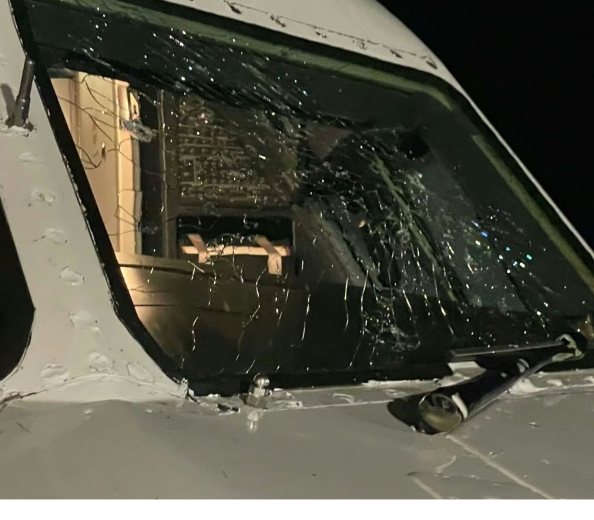 “The change in plans to land had nothing to do with the storm damage,” the captain said, “it was cross winds. We are going to another runway. Different angle. We will be on the ground in a few minutes.”