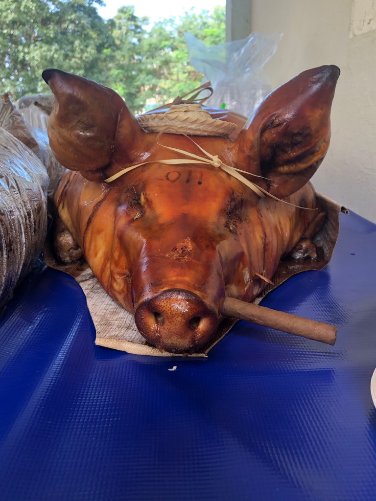 From a recent lunch in Cuba — note the hat and cigar. This vegetarian did not partake!