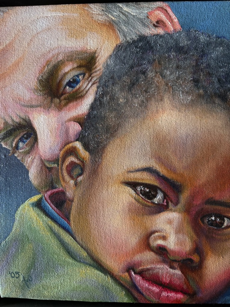 A fellow parent presented me with this painting of Nathanael and me during Nate’s kindergarten years. I did see her taking a photograph of us a few days before she presented me with this treasured gift.